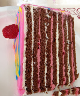 Today I fixed my hair in a high bun that swirled up to look not unlike a strawberry-blonde Swiss roll. Oooh, that reminds me of the wonderful birthday cake I had! I certainly could go for another piece :-D