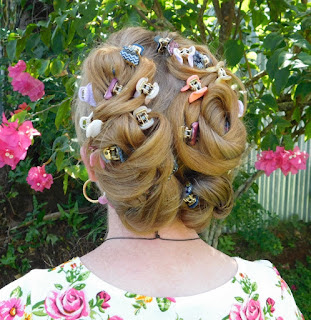 Thank you for following my blog! I hope you enjoy seeing my posts even a fraction as much as I enjoy sharing them with you. I had an idea to make a hairstyle using not one but two rows of Mohawk-style buns. I held my hair in place with a variety of hairclips. I like how this turned out and will definitely try it again.